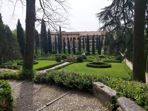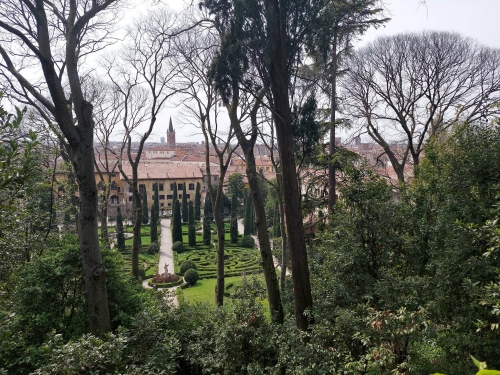 Ще ви разкажа за най-красивата гледка от днешния ден. Giardino Giusti. Градината с кипарисите, лимоните и костенурките. Градината с момичетата, които дълго си правеха снимки над разстлания пред тях град, с жената със сламената шапка, която ваеше пастелени кипариси над скицника, с птичките избягали от минаващите недалеч коли и мотори, и техните песни, които огласяха омайно чимширените алейки.