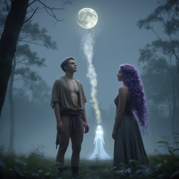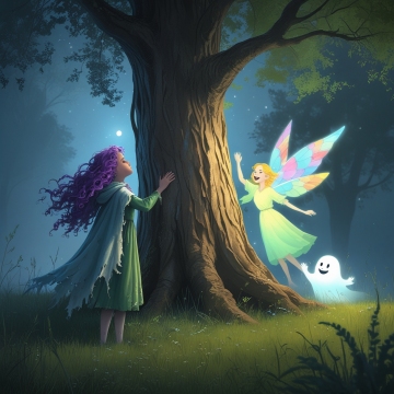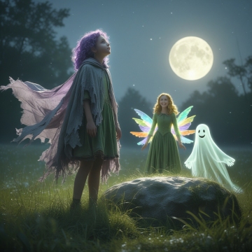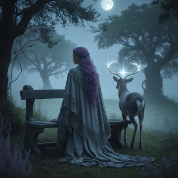 Бе нощ, в която Луната не се показваше, а тъмнината беше тиха и гъста като мастило. Лийла седеше на пейката в гората както всяка нощ, но този път не можеше да се отпусне в мислите си. Въздухът беше напрегнат, неподвижен, сякаш горските дървета вдишваха, но не можеха да издишат. Изведнъж се чу тих, отчетлив шум — не като вятър или листа, а като стъпки. Тя се обърна и видя как от мъглата се приближава елен. Но не обикновен — цялата му козина бе сребриста, а от челото му, между рогата, струеше светлина като от малка, искряща звезда.