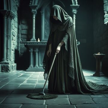 Една ранна утрин, докато търкаше с ледена вода и пепел старите каменни плочи в южното крило, Лийла съзря нещо странно — малък процеп в дъсчената стена, който никога по-рано не бе забелязвала. Любопитството ѝ, както винаги, надделя. След като се увери, че никой не я наблюдава, започна да разширява процепа с помощта на лопатата, в която събираше боклука. И когато той стана достатъчно широк, за да пъхне ръката си вътре, Лийла забеляза в пролуката желязна ръкохватка. Промуши ръката си в отвора и щом докосна метала, нещо леко запулсира под кожата ѝ, а дъските, изглеждащи до този момент като като част от стената, оформиха малък дървен капак, който се отвори със сух, щракащ звук.