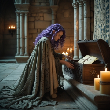 Зад капака се криеше каменна ниша. В средата ѝ — стар сандък, покрит с дантела от дебел слой прах. Сърцето на Лийла заби бързо, но не от страх, а от усещане за нещо близко и познато. Когато отвори сандъка, намери вътре писмо, увито в парче плат в избелял люляков цвят. Печатът беше напукан, но върху него все още ясно личеше буквата Л, обрамчена с цветя. Хартията ухаеше на нещо далечно, но все още живо.