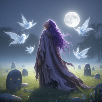 Всяка нощ, щом монахините и останалите послушнички заспяха дълбок, смирен сън, тя се измъкваше от леглото, тихо на пръсти излизаше от спалното помещение, лекичко отключваше портата на манастира с ключа, с който разполагаше заради носенето на вода .. и се упътваше към близката гора. Там посядаше на старата дъбова пейка, отмяташе качулката от главата си и даваше свобода както на красивата си лилава коса, така и на всички свои скрити мисли и въпроси. Дълго разговаряше с Луната, с Дърветата, с Тревата и с Нощните птици, споделяйки с тях своите грижи. С времето беше развила умение да получава всички необходими отговори от дòсега с техните неизчерпаеми знания и сила.